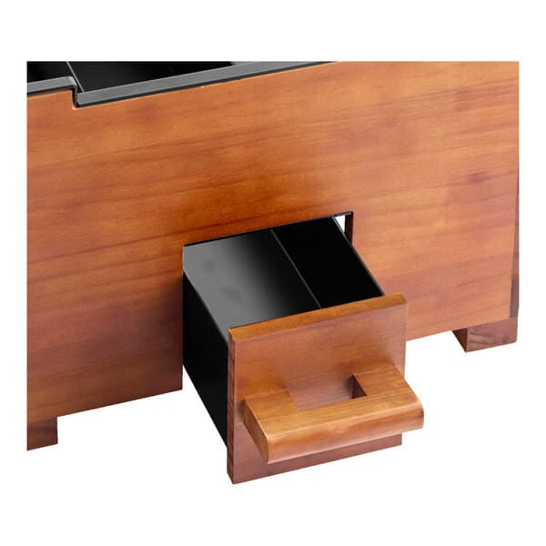 - Incorporates a built-in drawer for storing canned chafer fuel