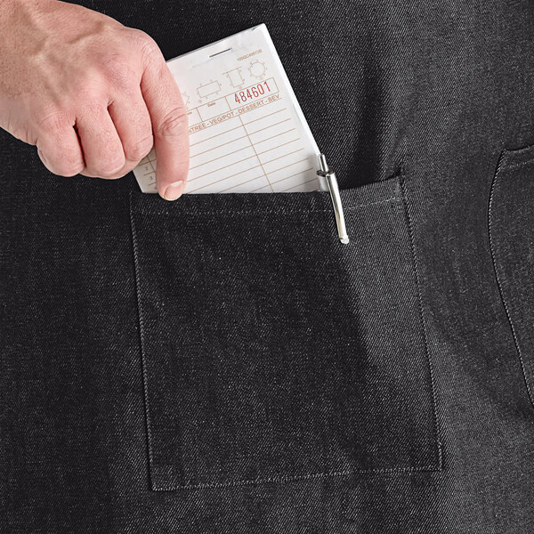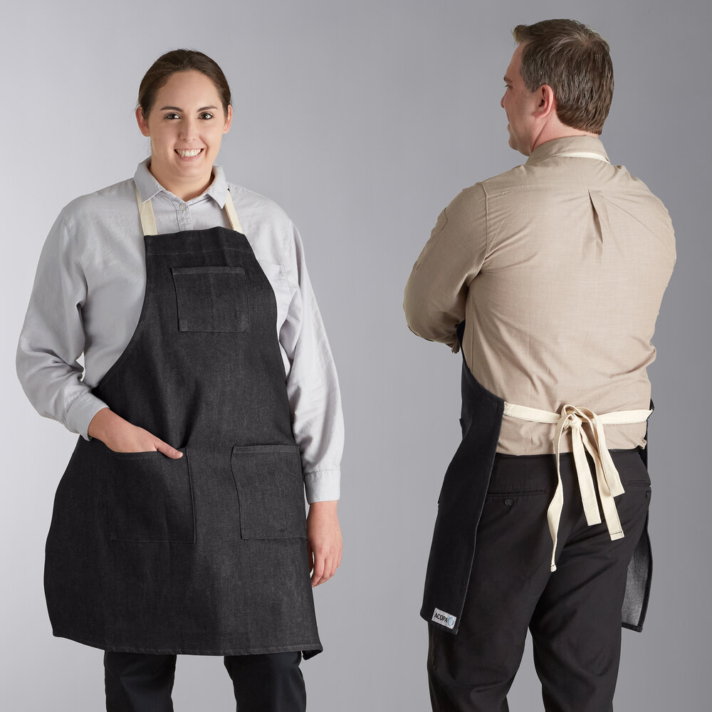 Kennett Black Denim Adjustable Bib Apron with 3 Pockets and Natural Webbing - 32" X 30"