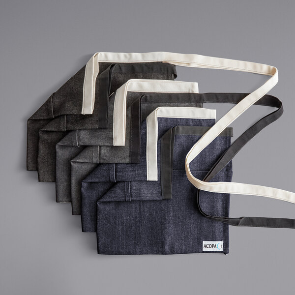 Kennett Gray Denim Waist Apron with 3 Pockets and Black Webbing - 12" x 26"