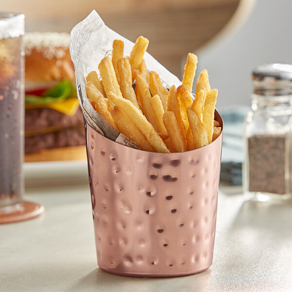 12 oz. Hammered Copper Stainless Steel Appetizer / French Fry Holder with Angled Top