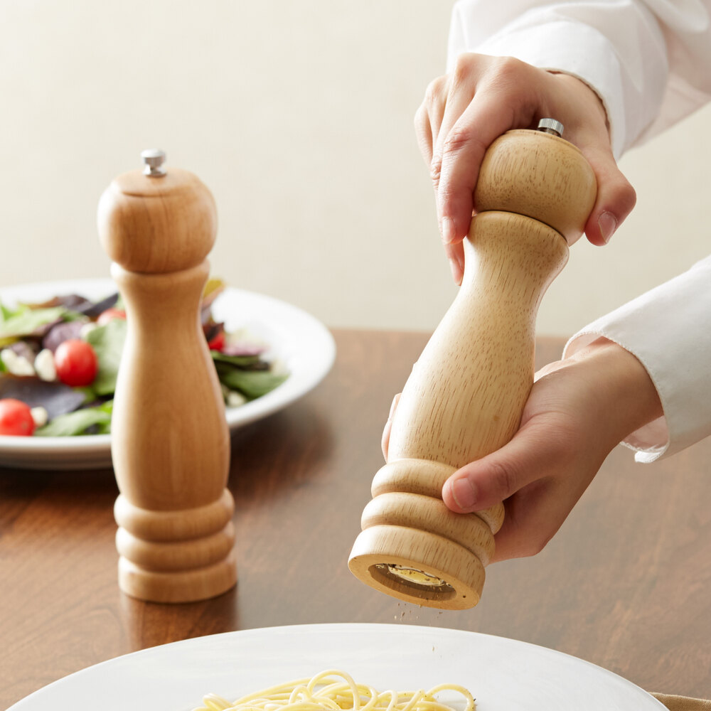 I recently used the Acopa 10" Matte Natural Wooden Salt / Pepper Mill it adds both functionality and elegance to my kitchen. Crafted from durable turned wood with a light, natural finish, this mill features a ceramic grinding mechanism that ensures longevity and corrosion resistance, ideal for both salt and pepper.