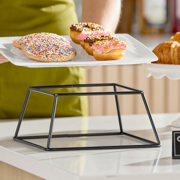 I bought these display stands for my new square plates we upgraded to, they work fine but i also use them to serve pizza on, i just put little rummer tabs on 4 corners and a pizza tray sits on there sturdy.