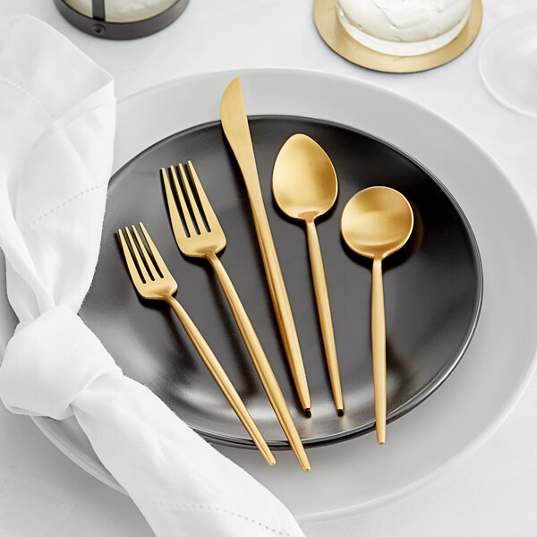 Odin Gold 18/8 Brushed Stainless Steel Extra Heavy Weight Forged Flatware 5-Piece Set - Sample