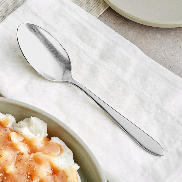 Pangea 7 1/8" 18/8 Distressed Stainless Steel Extra Heavy Weight Dinner / Dessert Spoon - 12/Case