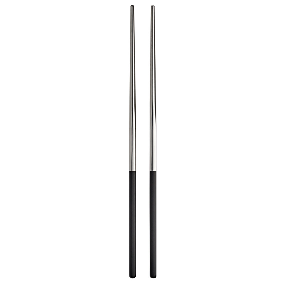 Heika 9" Black / Silver 18/8 Stainless Steel Extra Heavy Weight Chopstick Set - 12/Pack