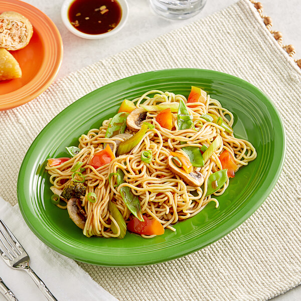 Capri 11 1/2" x 8 3/4" Palm Green Oval Stoneware Coupe Platter - 12/Case