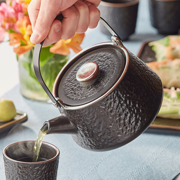 Heika 24 oz. Black Matte Textured Stoneware Teapot with Lid