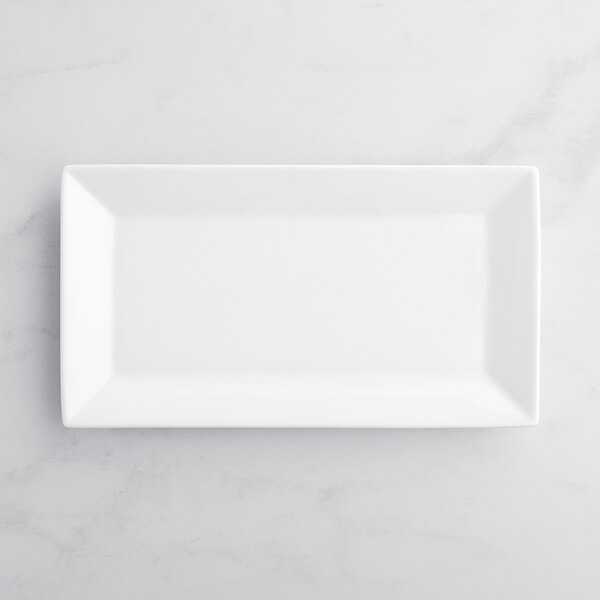 13" x 7 1/4" Bright White Rectangular Porcelain Platter - 12/Case