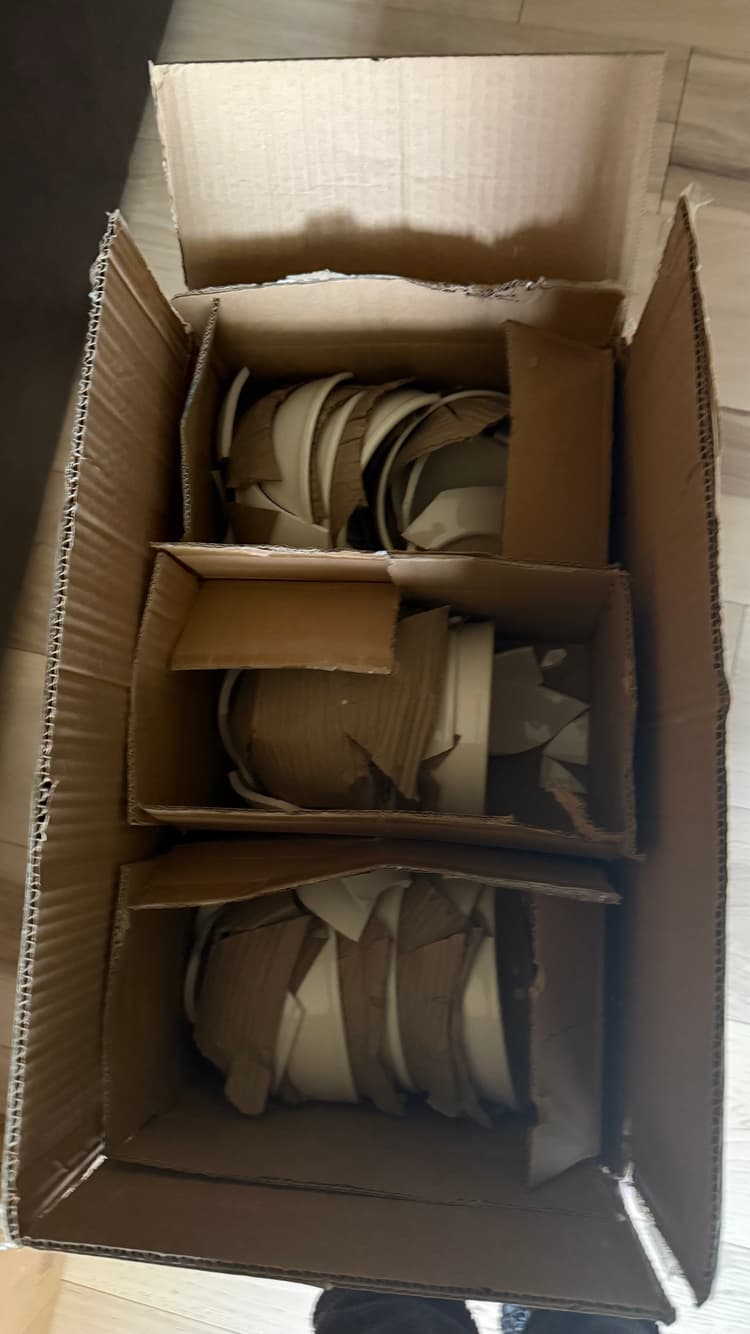 - Robert A. - April 29, 2024 - I ordered three cases and almost all arrived completely smashed. I cut my hands on the shards and breathed in a lot of ceramic dust trying to open these.
