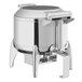 Voyage 11 Qt. Round Stainless Steel Induction Soup Chafer with Glass Top, Soft-Close Lid, and Stand with Fuel Holder