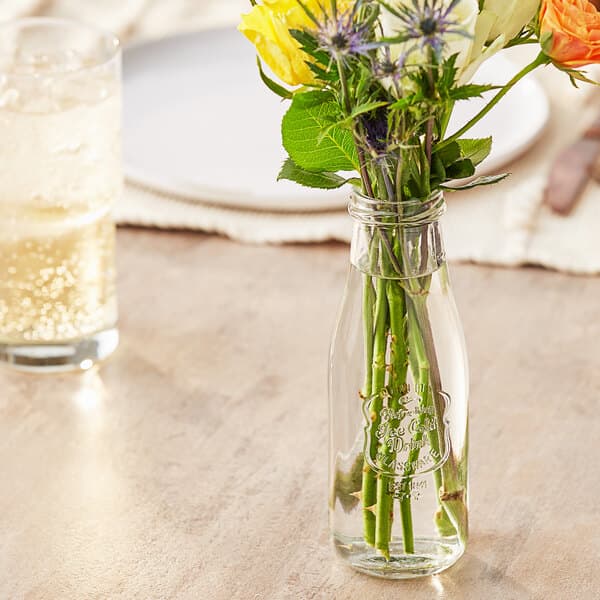 14 oz. Embossed Glass Milk Bottle - 12/Case