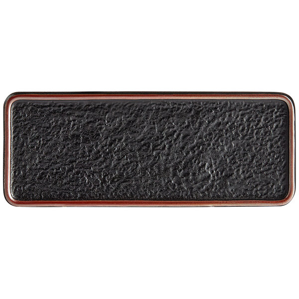 Heika 11 7/16" x 4 1/2" Black Matte Textured Rectangular Flat Stoneware Plate - Sample