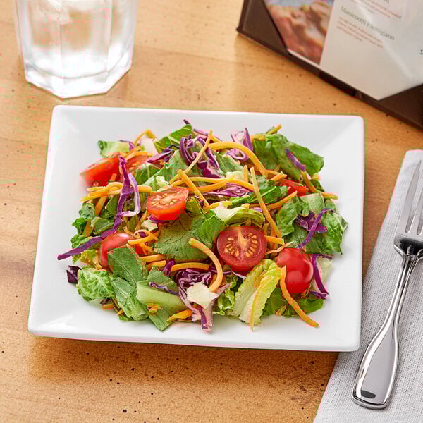 7" Bright White Square Porcelain Plate - 6/Pack