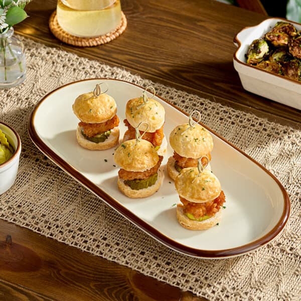 Keystone 14" x 6 3/4" Vanilla Bean Stoneware Oblong Coupe Platter - Sample